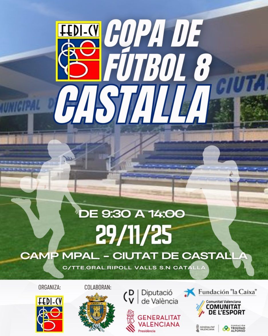 La Concejalía de Deportes del Ayuntamiento de Castalla ha anunciado la celebración de la Copa de Fútbol 8, organizada por la Federación de Deportes para personas con Discapacidad Intelectual de la Comunitat Valenciana (FEDI).
