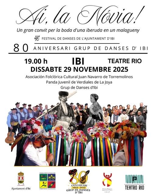 El sábado 29, a las 19:00 horas y en el Teatro Río de Ibi, tendrá lugar una celebración tan especial como original: la representación de unas grandes bodas entre una iberuda y un malagueño, un espectáculo festivo abierto a todo el público.