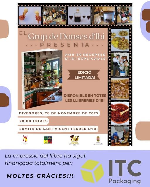 Este viernes tendrá lugar uno de los actos más esperados: la presentación del libro “La Cuina Tradicional d’Ibi. Si vols sopar no te’n vagues”, un ambicioso proyecto que recopila 80 recetas típicas de Ibi, acompañadas de explicaciones detalladas y fotografías del reconocido fotógrafo Vicent Pérez Belda.