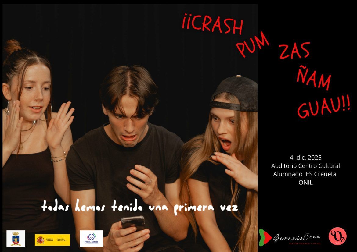 La obra, titulada “Crash Pum Zas Ñam Guau”, es una propuesta escénica innovadora que invita a la reflexión y promueve el empoderamiento juvenil en torno a cuestiones esenciales como el consentimiento, el autocuidado y las relaciones afectivas saludables.