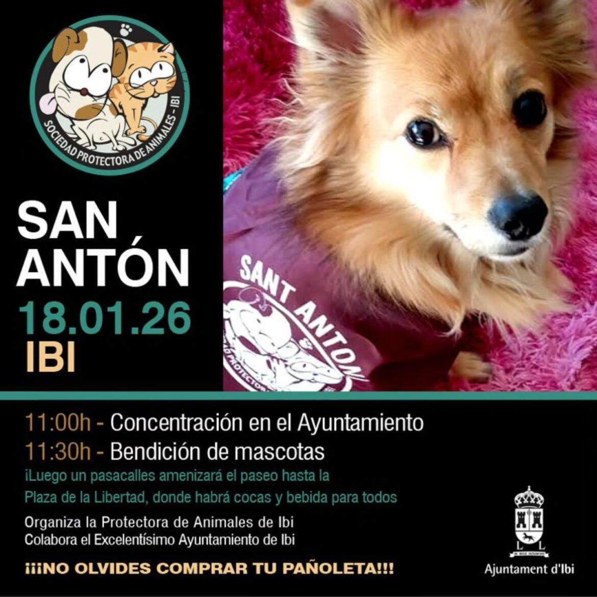 Este próximo domingo, 18 de enero, los vecinos y vecinas de Ibi celebrarán el día de San Antón, patrón de los animales, en una jornada especialmente pensada para las personas que conviven con mascotas y desean participar en su tradicional bendición, en un ambiente festivo y de convivencia.