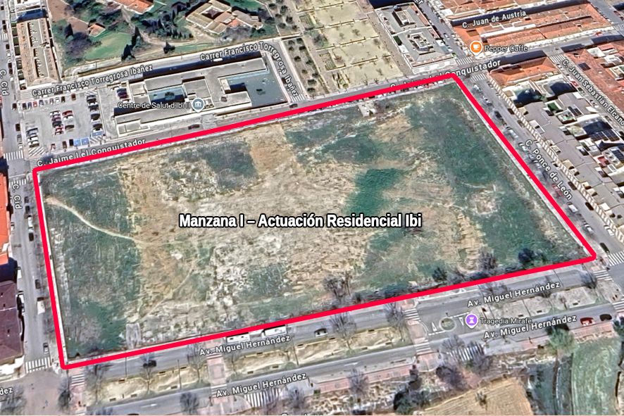 La actuación de SEPES en Ibi se ubica en la Manzana I, correspondiente a la antigua UE R-25 del sector P-R 25, frente al II Centro Sanitario Integrado “Dr. Antonio Anguiz”. La entidad estatal firmó un convenio en 2007 para urbanizar aproximadamente 12.000 metros cuadrados. De los 18.760 metros cuadrados de la parcela, 7.700 se destinaban a zonas verdes y espacios públicos, y el resto a edificación, lo que podría permitir la promoción de un mínimo de 100 y hasta un máximo de entre 700 y 850 viviendas protegidas. Se trata de uno de los espacios estratégicos del municipio para ampliar el parque de vivienda asequible y facilitar el acceso de jóvenes y familias a un hogar digno.