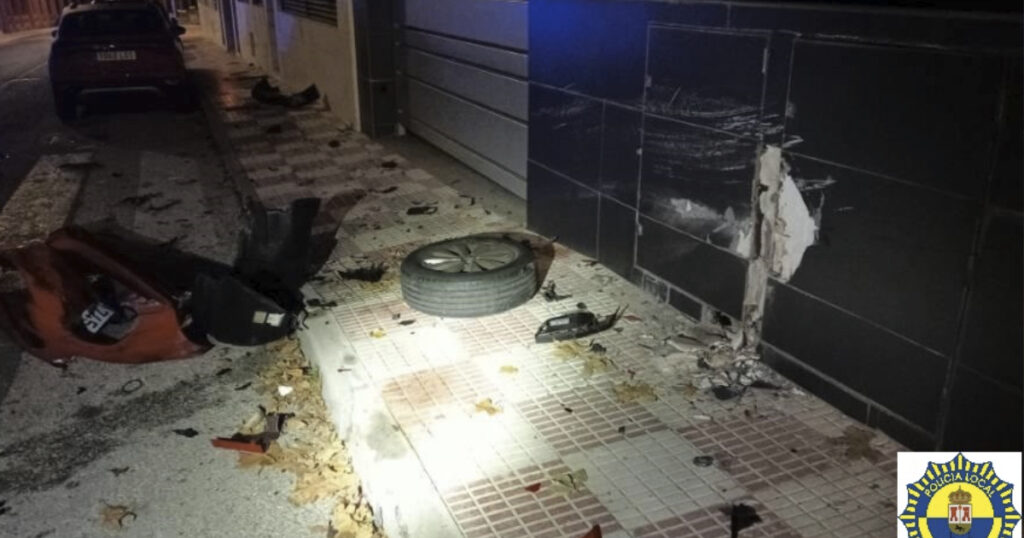 El siniestro se produjo sobre las 02:15 horas en la calle Palafanga, cuando un turismo colisionó violentamente contra varios coches aparcados. Como resultado del impacto, un Seat Arona fue desplazado hasta chocar contra la fachada de una vivienda, quedando detenido en el centro de la calzada con graves daños, incluida la pérdida de una de sus ruedas traseras.
