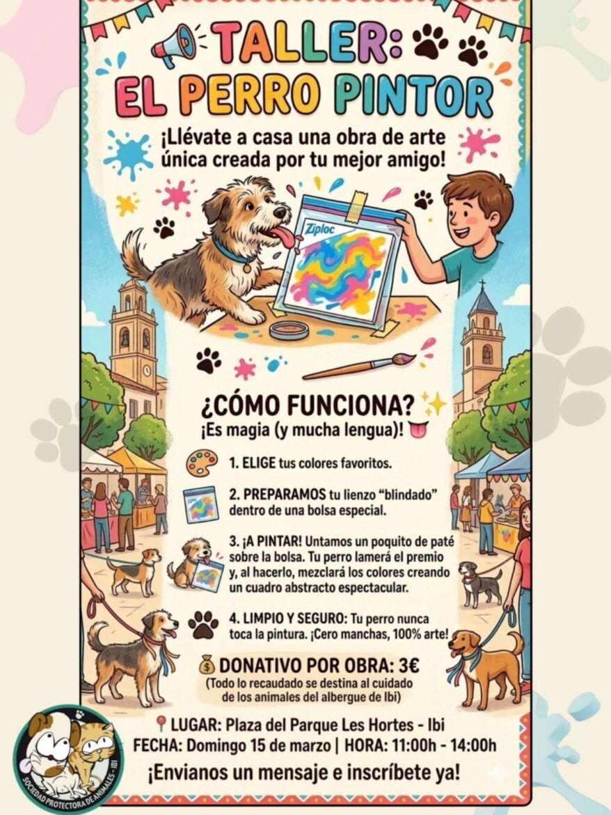 Durante el evento, los asistentes podrán disfrutar de diferentes actividades pensadas para toda la familia. Entre ellas destaca el concurso de disfraces para perros, una propuesta divertida para participar con las mascotas, así como el taller del “Perro pintor”, donde los perros crearán pequeñas obras de arte que después podrán adquirirse para ayudar económicamente a la protectora.