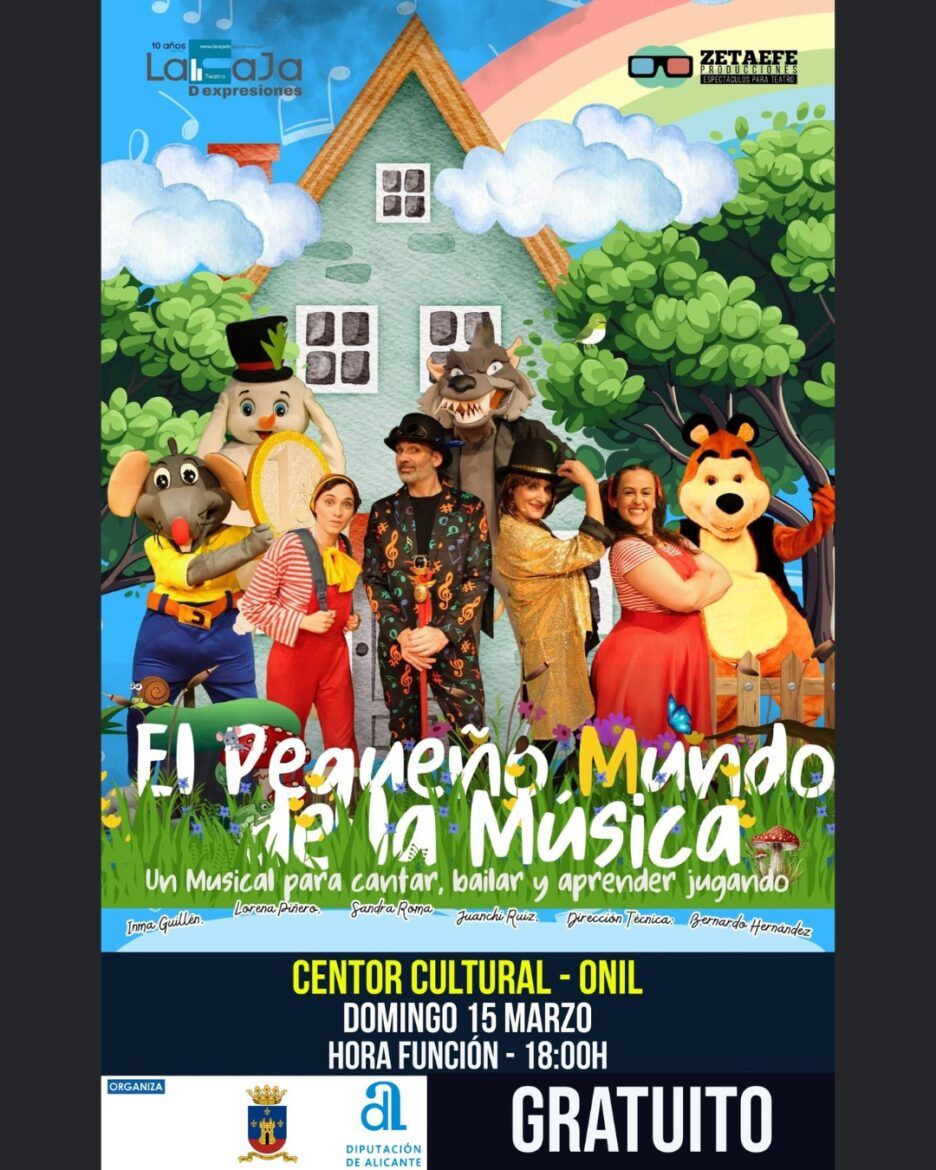 El próximo 15 de marzo el Auditorio Municipal de Onil acogerá el espectáculo familiar “El Pequeño Mundo de la Música”, un musical lleno de canciones, baile y personajes entrañables pensado para que niños y adultos disfruten juntos de una tarde diferente.