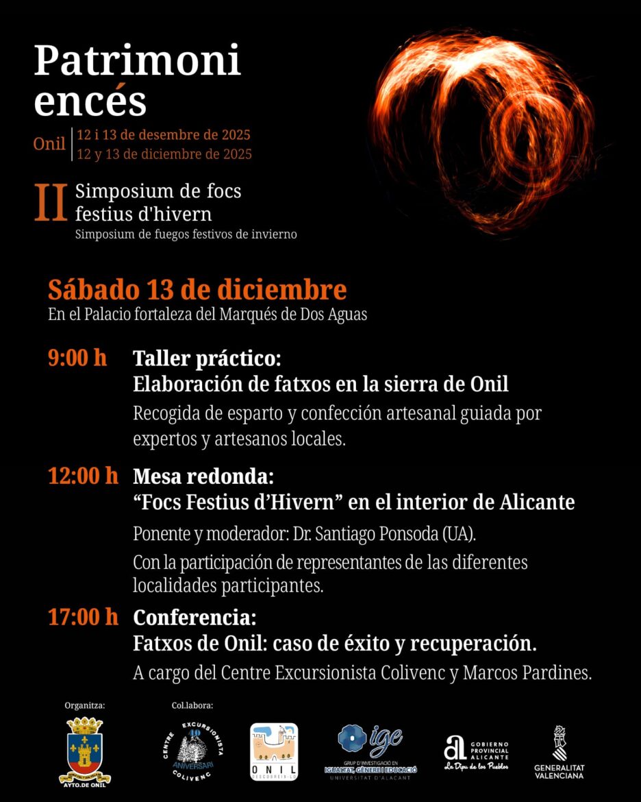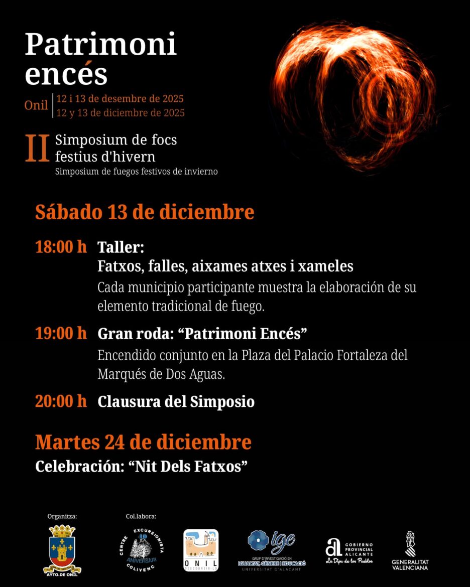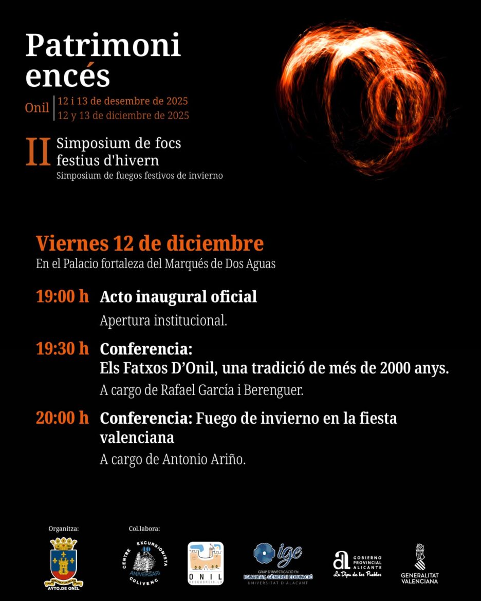 Els pròxims 12 i 13 de desembre, la localitat d’Onil celebrarà el II Simposium de Focs Festius d’Hivern – Patrimoni Encés, un esdeveniment cultural de gran rellevància destinat a salvaguardar i difondre unes tradicions amb més de mil anys d’història al Mediterrani i, de manera especial, a l’interior de la província d’Alacant.