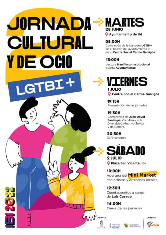 Las actividades programadas tendrán lugar del 28 de junio y el 1 y 2 de julio. El Ayuntamiento de Ibi, a través del área de Igualdad, organiza un año más la Jornada Cultural y de Ocio LGTBI+ cuyo inicio tendrá lugar el martes, 28 de junio, a las 8:00 h, con la colocación de la bandera LGTBI+ en el balcón del ayuntamiento y en el Centre Social Carme Garrigós. A las 13:00 h, tendrá lugar la lectura del Manifiesto Institucional […]
