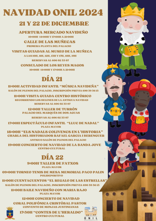 Donde nacen los sueños, Navidad en Onil 2024 Este año, Onil se prepara para celebrar una Navidad inolvidable con un programa repleto de actividades para todos los públicos durante todos los fines de semana de diciembre. La localidad, conocida como la cuna de las muñecas, se transforma en un escenario lleno de magia, tradición y diversión para disfrutar en familia. La Navidad en Onil será una experiencia única gracias a las diversas actividades programadas: Actividades infantiles: Juegos, talleres y manualidades […]